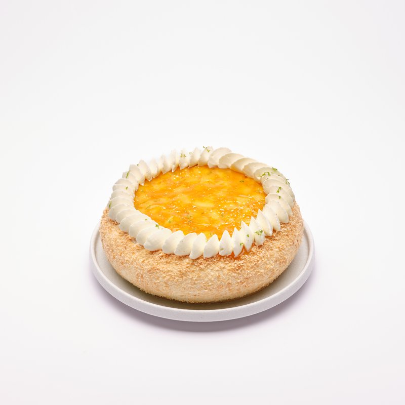A sweet ode to our heritage. Delight in a burst of tropical flavours in each bite, with fragrant notes of pandan and gula melaka enveloped in fluffy coconut and lime sponge, and crowned with a tangy mango-pineapple compote.