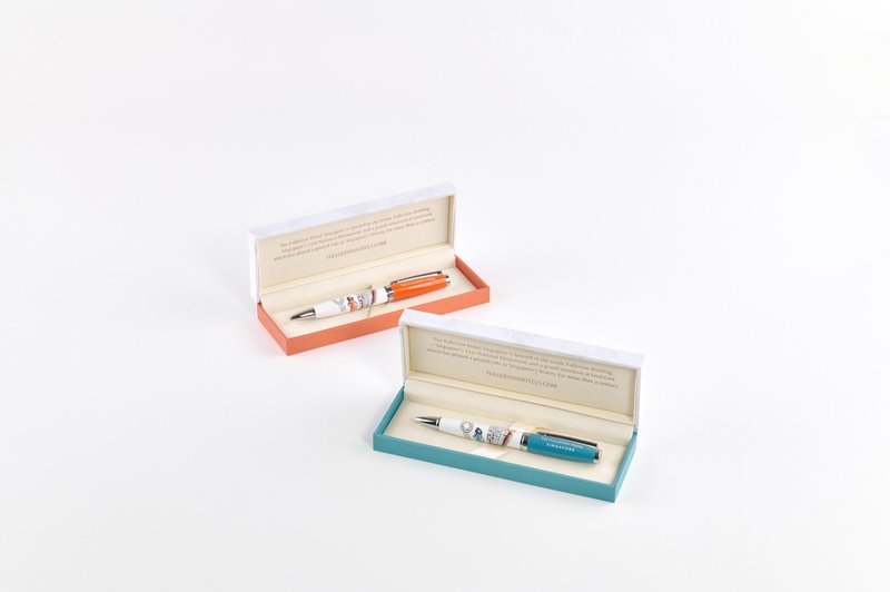 The Fullerton Pen embodies the timeless sophistication and heritage of The Fullerton Hotel Singapore. Crafted with refined detail and a smooth writing finish, it offers the perfect balance of elegance and function. Whether used for daily notes or treasured as a keepsake, this pen reflects the grace and legacy of The Fullerton where every word begins a new story.